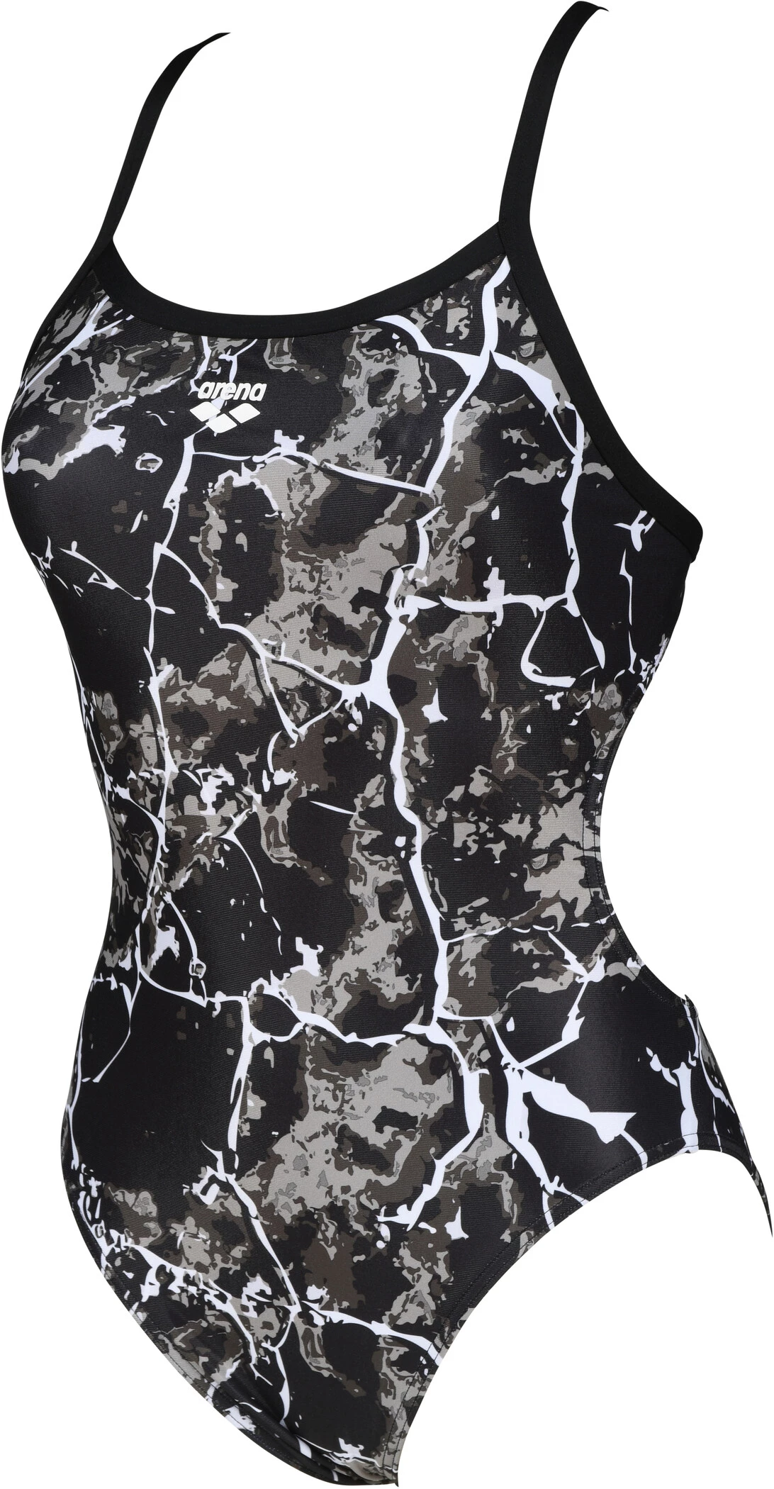 arena Earth Texture Challenge Back Swimsuit Women, noir/gris(black/black multi)