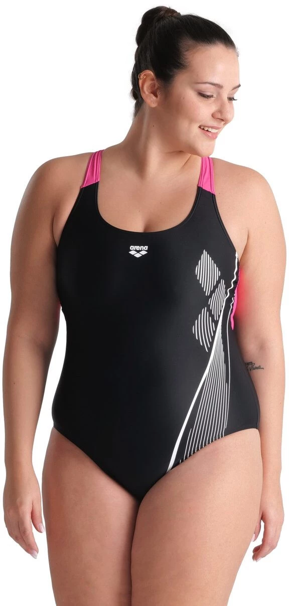 arena Pro Back Graphic Plus One Piece Swimsuit Women, noir/turquoise(black/martinica)