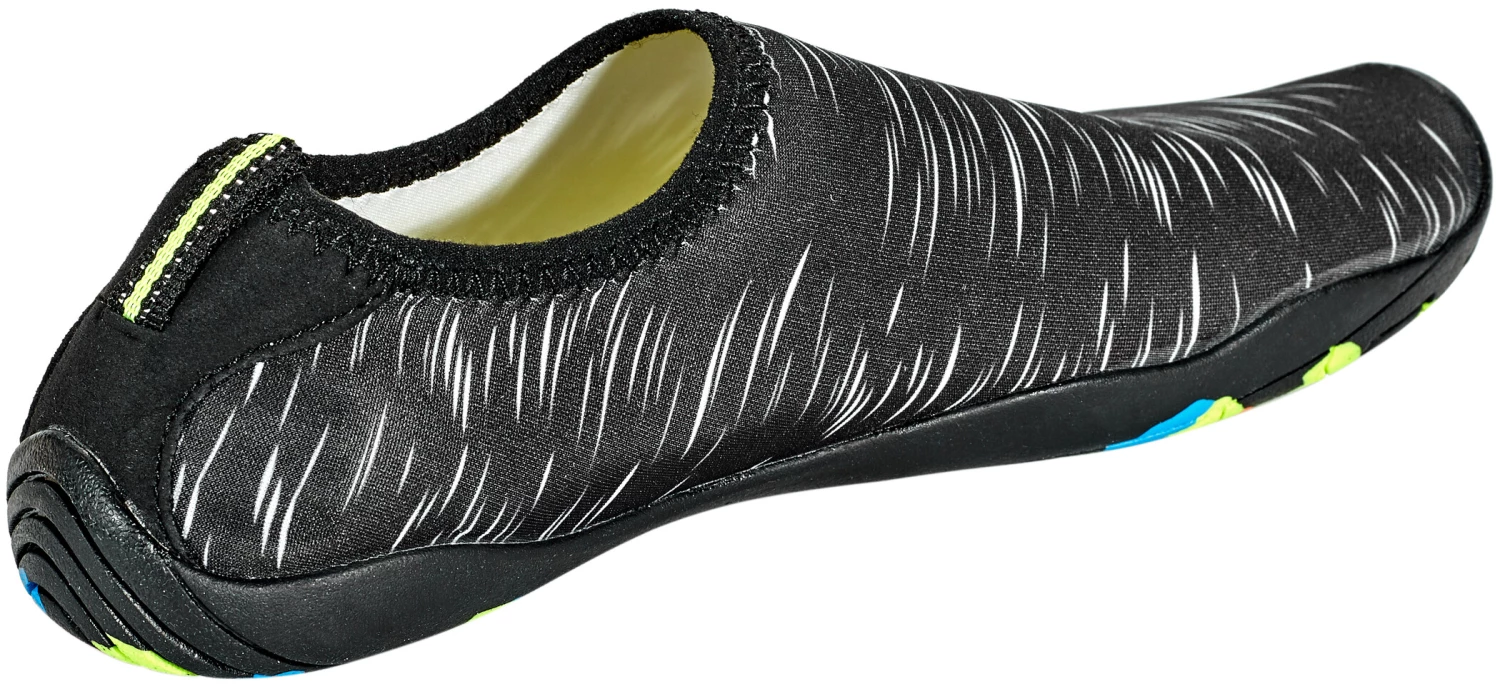 En kayak, à la piscine, en pleine rivière – partout où vous ne souhaitez pas marcher pieds nus dans l’eau, ces chaussures aquatiques pratiques protègent vos pieds des éclats, des cailloux et des mycoses. La semelle en caoutchouc solide et la semelle intérieure sont percées de petits trous qui permettent à l’eau de s’écouler efficacement, en assurant une bonne aération. Le matériau du dessus synthétique léger sèche rapidement, et vous garde au chaud même mouillé. Comme il est extensible, vous pouvez enfiler confortablement les chaussures aquatiques qui s’adapteront bien à vos pieds. La semelle intérieure perforée peut se retirer : les chaussures aquatiques sèchent particulièrement rapidement après l’utilisation.