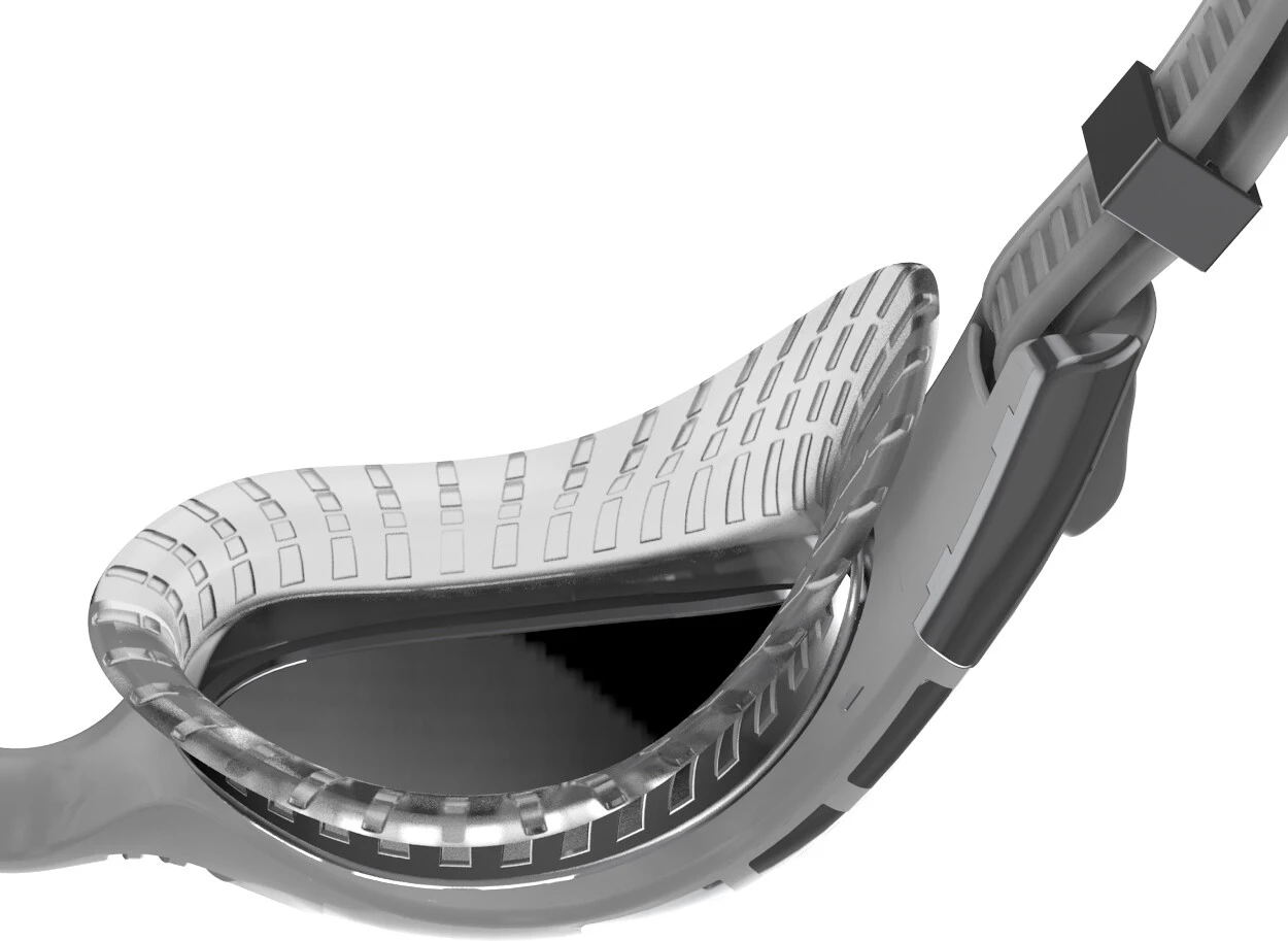 Les nouvelles lunettes Futura Biofuse Flexiseal Mirror offrent un joint super souple et flexible pour un confort de port optimal. Conception faite de matériaux similaires combinés avec la technologie Speedo Biofuse. Le confort de port est la priorité absolue avec ces lunettes de protection, ce qui permet d’obtenir un ajustement encore plus doux et rembourré autour des yeux. Avec ses lentilles réfléchissantes pour la protection contre l’éblouissement, le miroir de triathlon Futura Biofuse Flexiseal est parfait pour la compétition et la natation en plein air.
